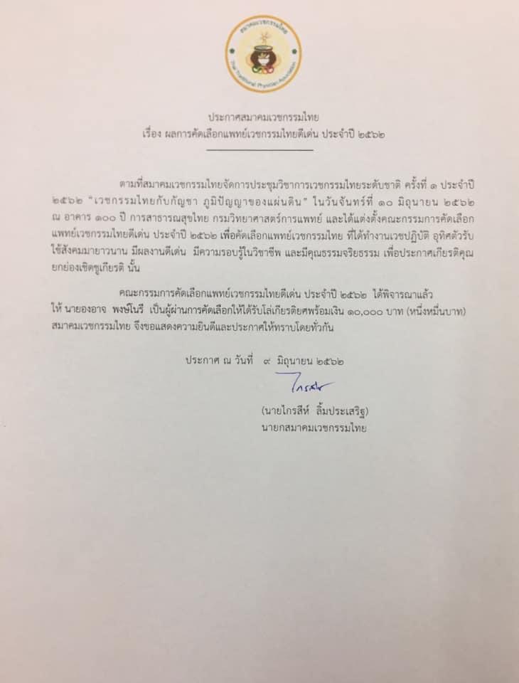 นายองอาจ พงษ์โนรีแพทย์เวชกรรมไทยดีเด่น ประจำปี 2562